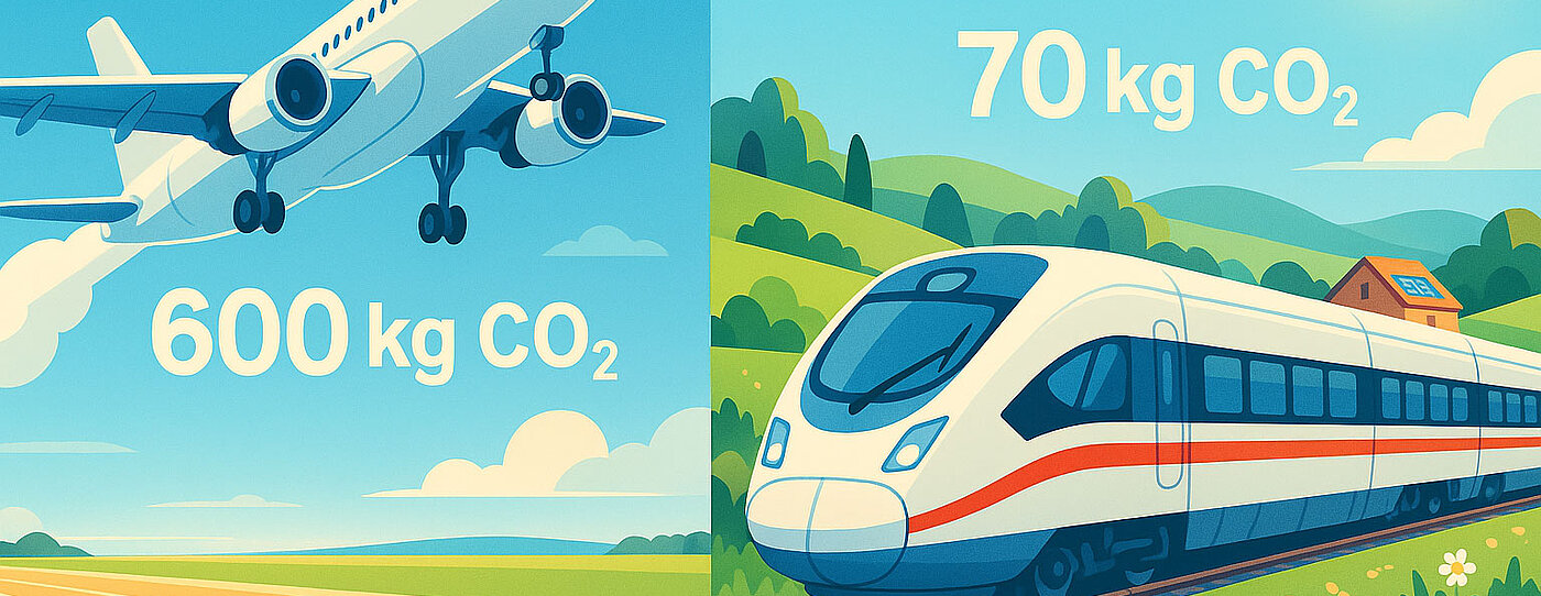- Paris–Lissabon Hin- und Rückflug: bis zu 600 kg CO₂ pro Person